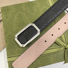 G BELT SILVER SQUARE BUCKLE BLACK LEATHER 3.5CM