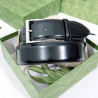 G BELT SILVER SQUARE INSTALL BUCKLE BLACK LEATHER 4.0CM