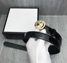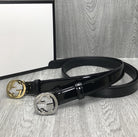 GG BELT INTERLOCKING G BUCKLE 25MM BLACK LEATHER