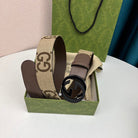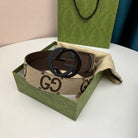 INTERLOCKING G BLACK GREY BUCKLE 40MM BEIGE CANVAS