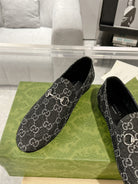 MEN'S LOAFER WITH HORSEBIT IN BLACK MONOGRAM JACQUARD FABRIC