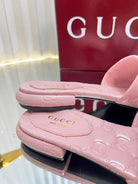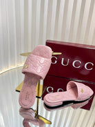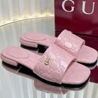 GC Double G Slide Sandals Pink Embossed Leather 294633