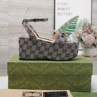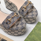 GG Horsebit Wedges Sandals Light Grey