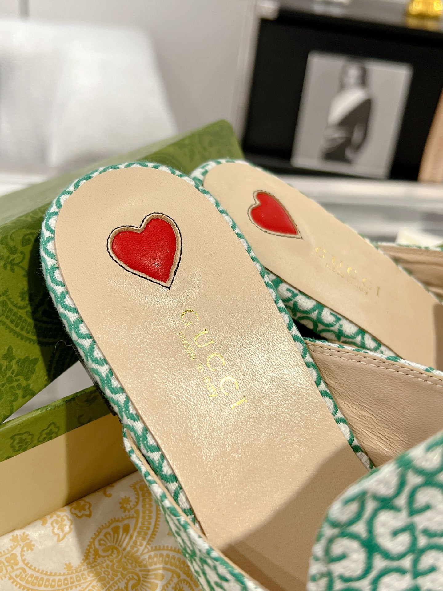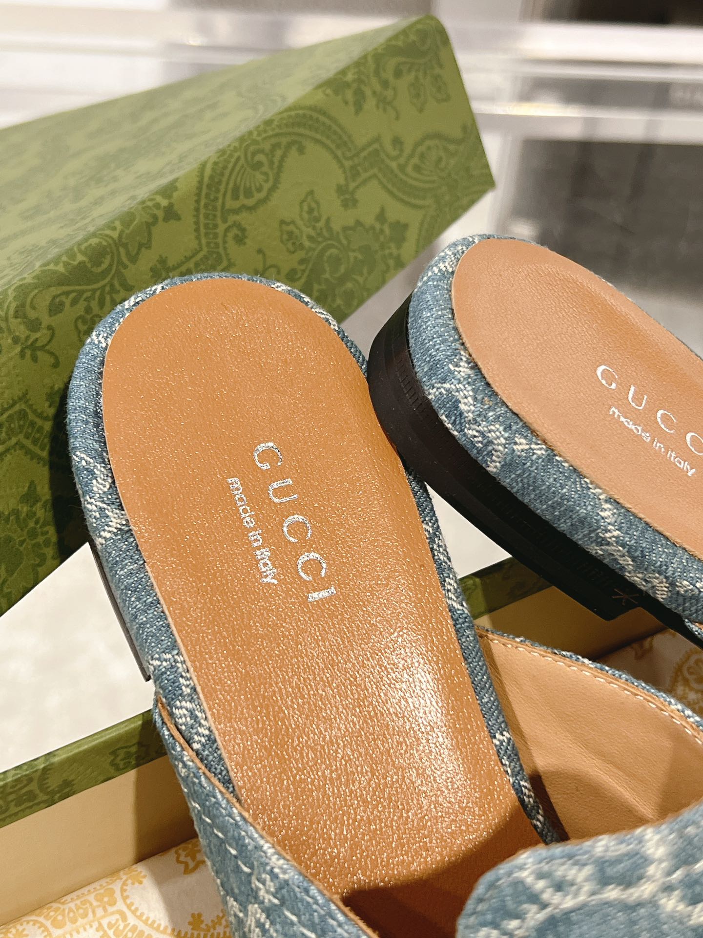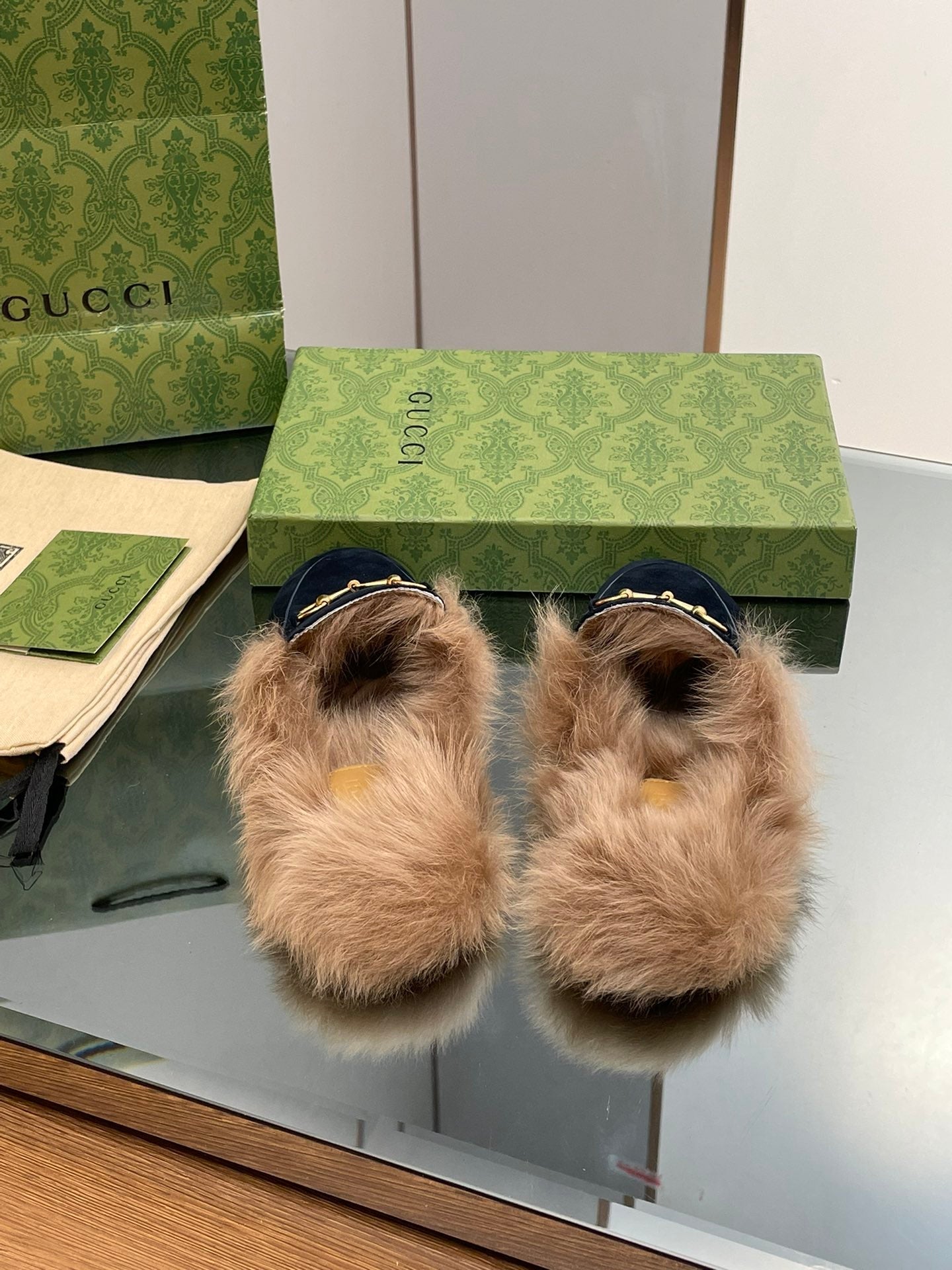 GG MOLLY MULE IN PEANUT BROWN MONOGRAM JACQUARD FABRIC AND SHEARLING LINING