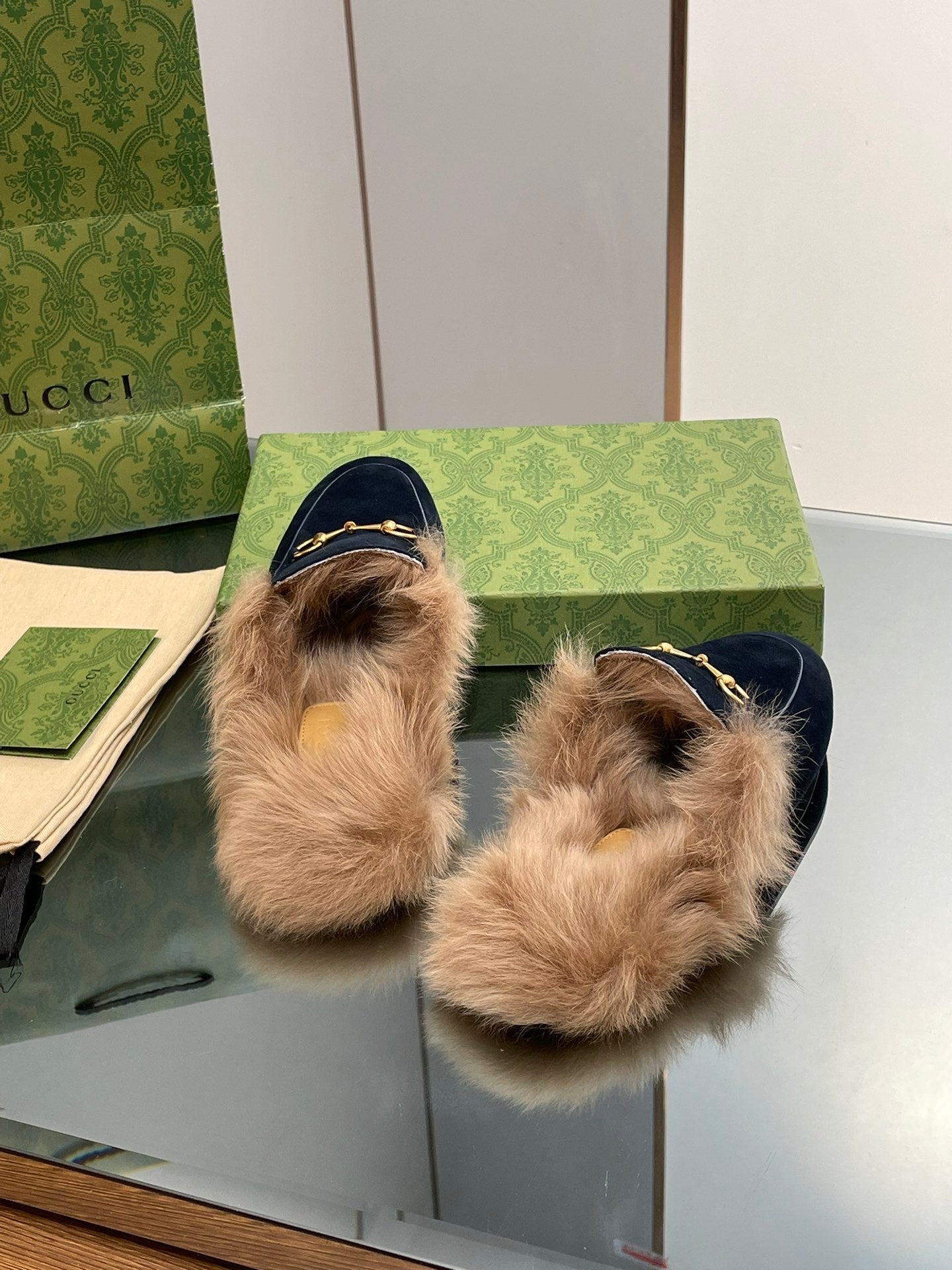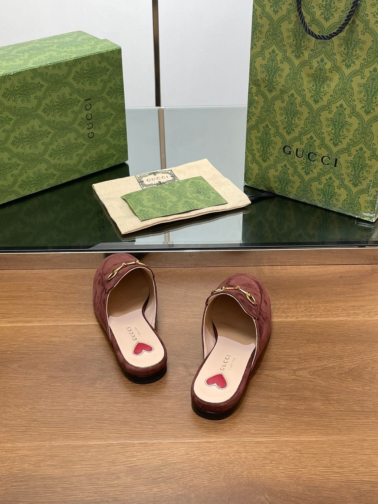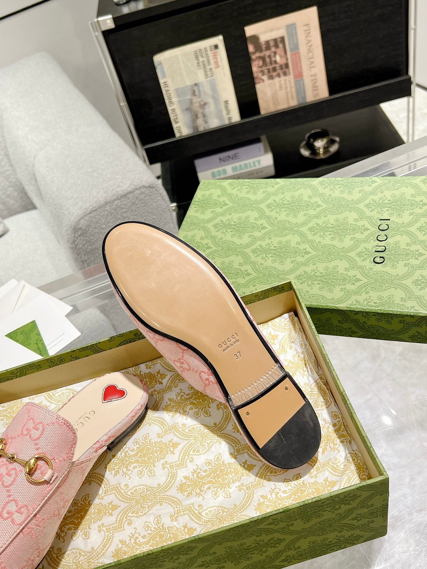 GG MOLLY MULE IN PEANUT BROWN MONOGRAM JACQUARD FABRIC AND SHEARLING LINING