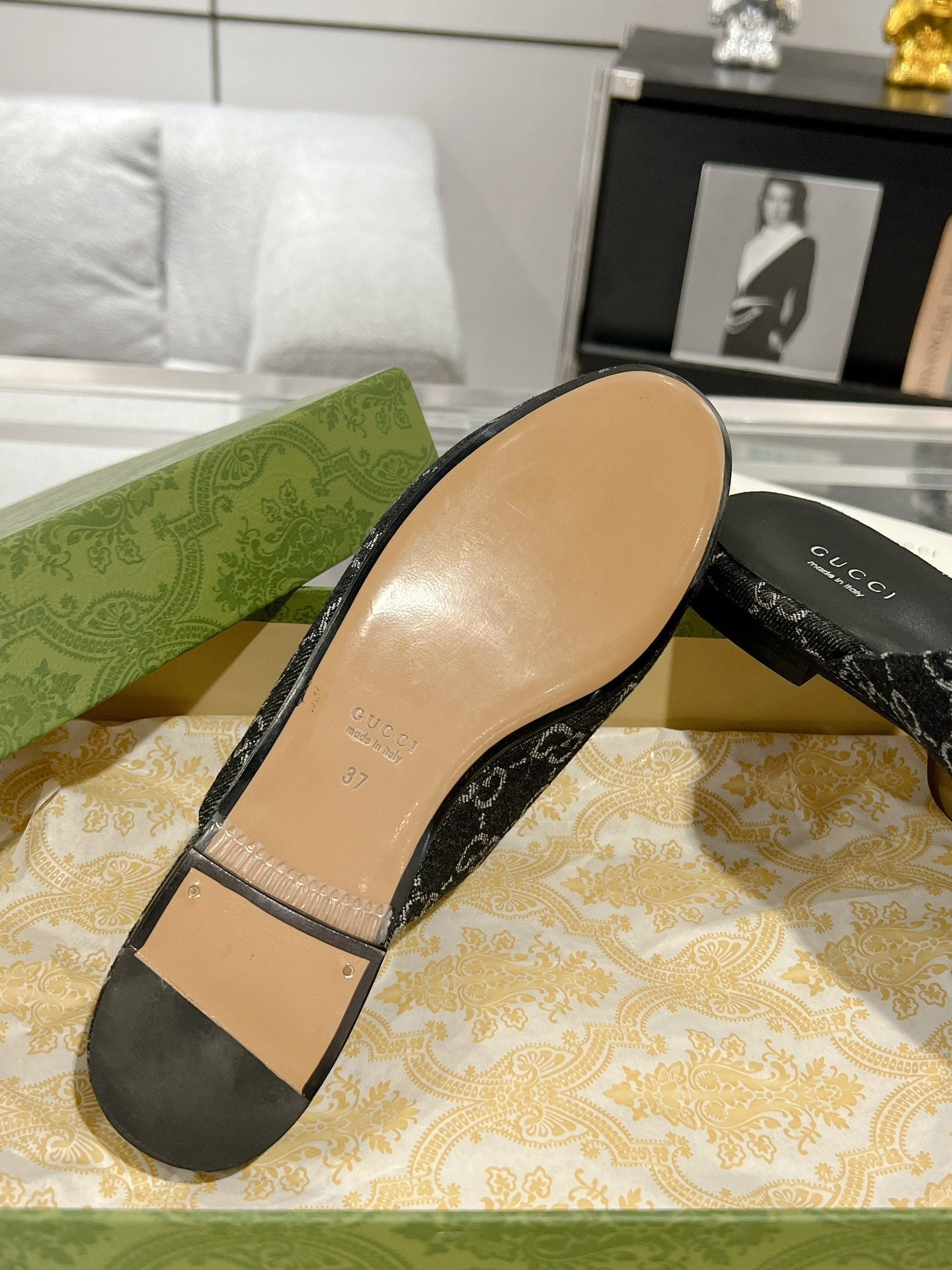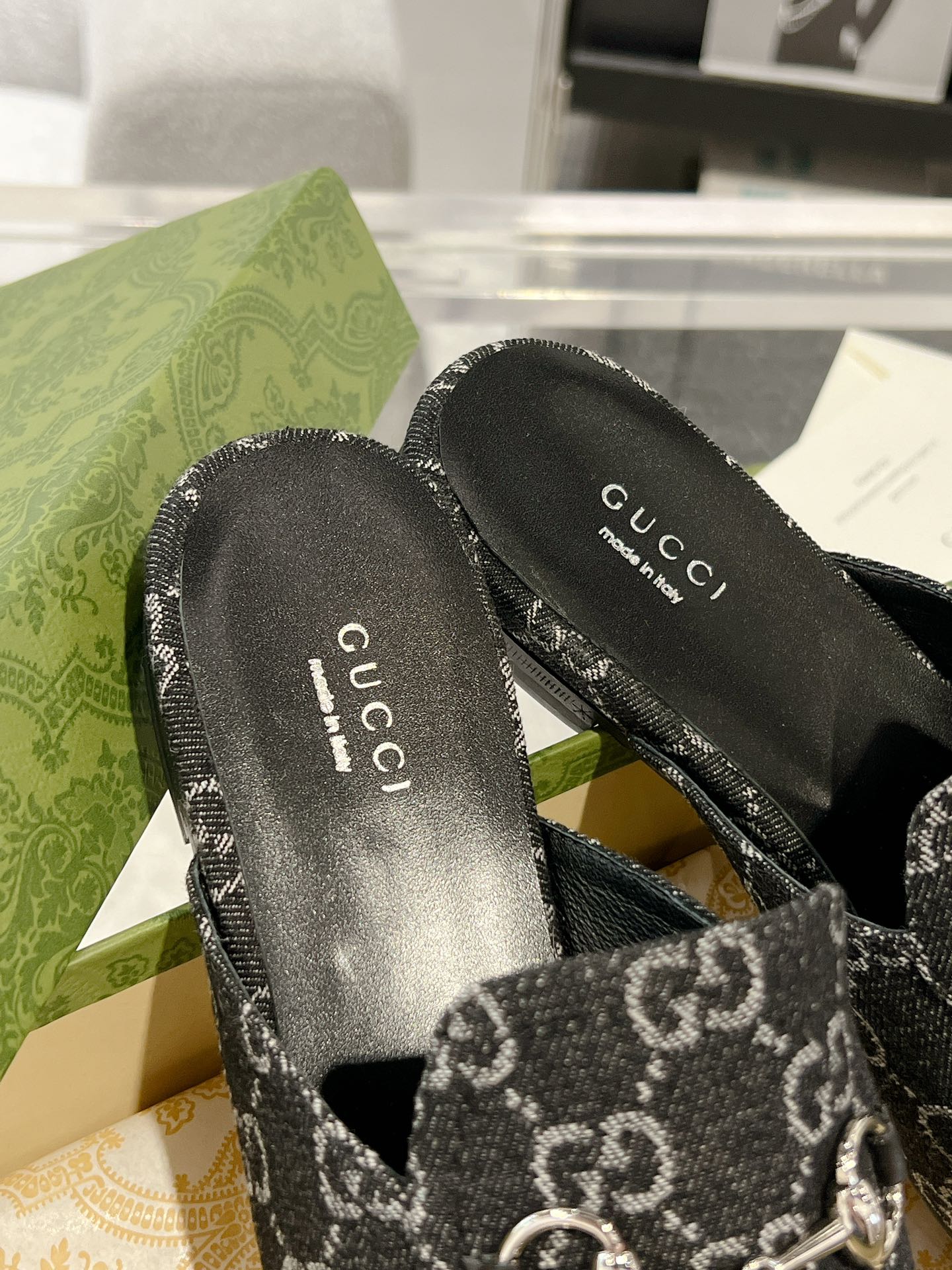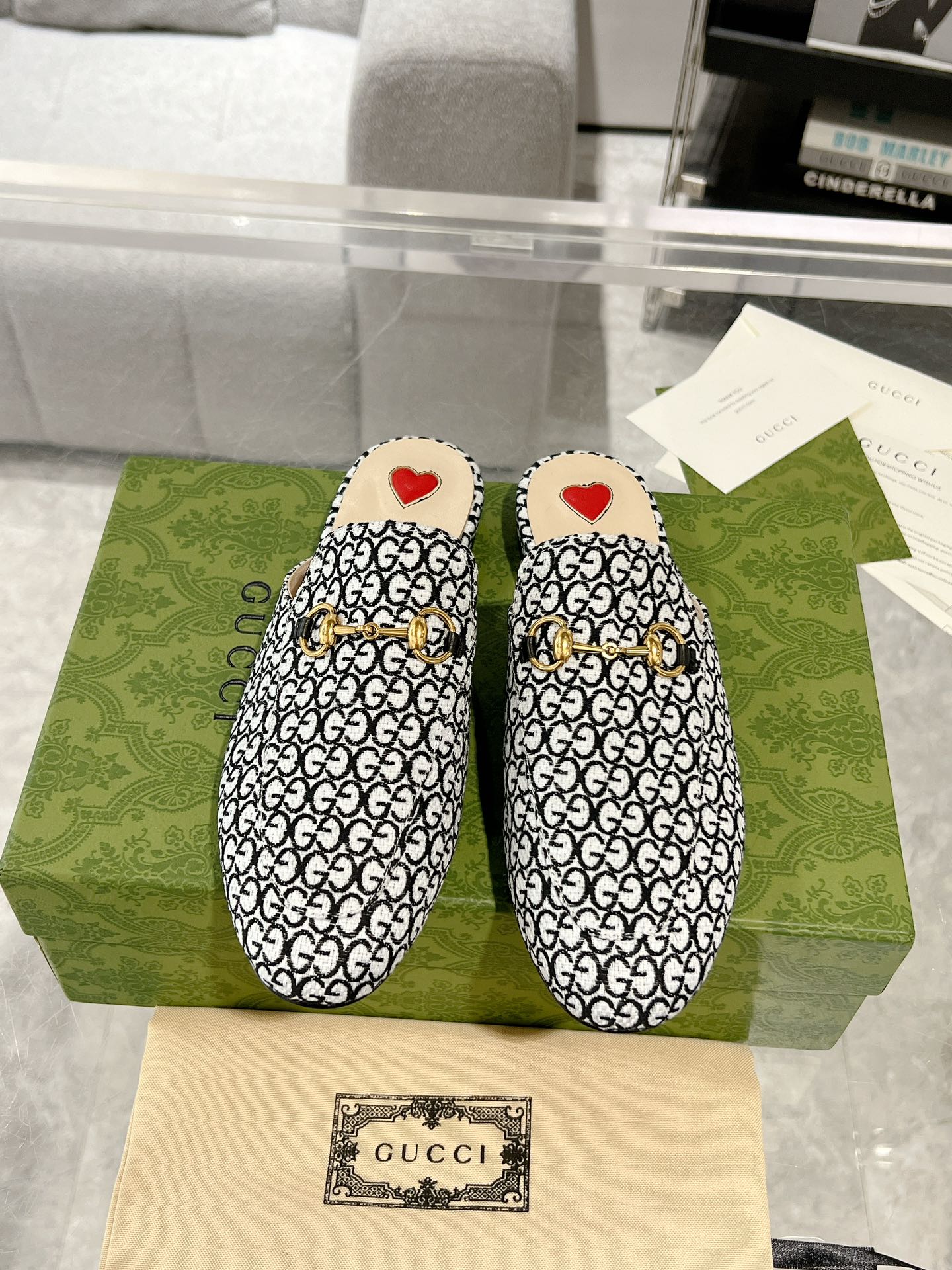 GG MOLLY MULE IN BLACK MONOGRAM JACQUARD FABRIC AND SHEARLING LINING