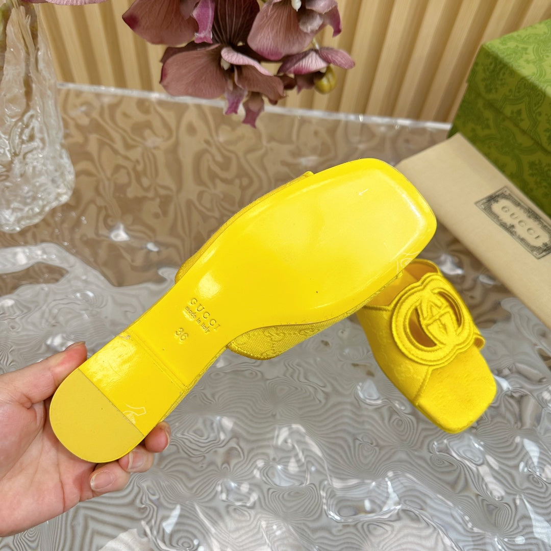 WOMEN'S SLIDE SANDAL WITH GG CROSS LEMON CANVAS