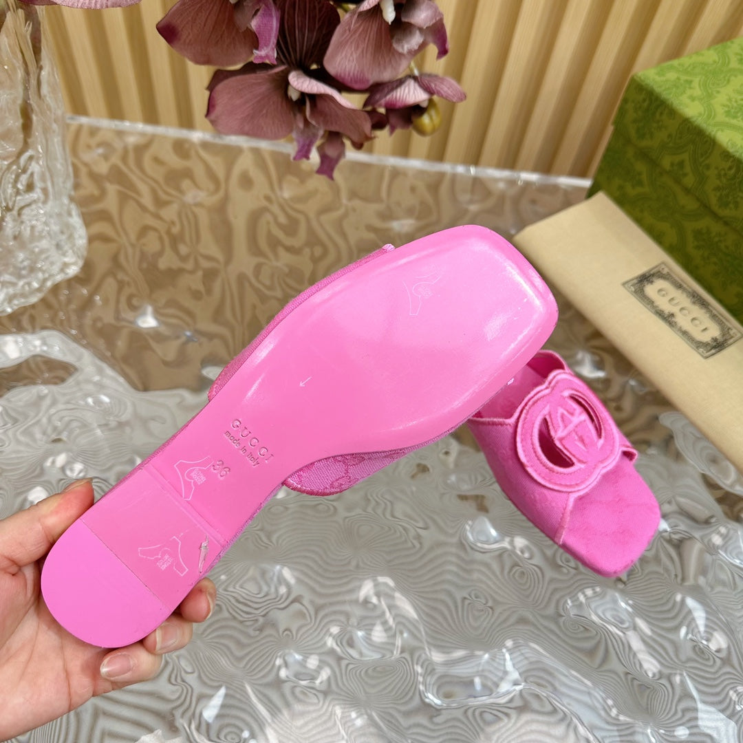 WOMEN'S SLIDE SANDAL WITH GG CROSS BRIGHT PINK CANVAS