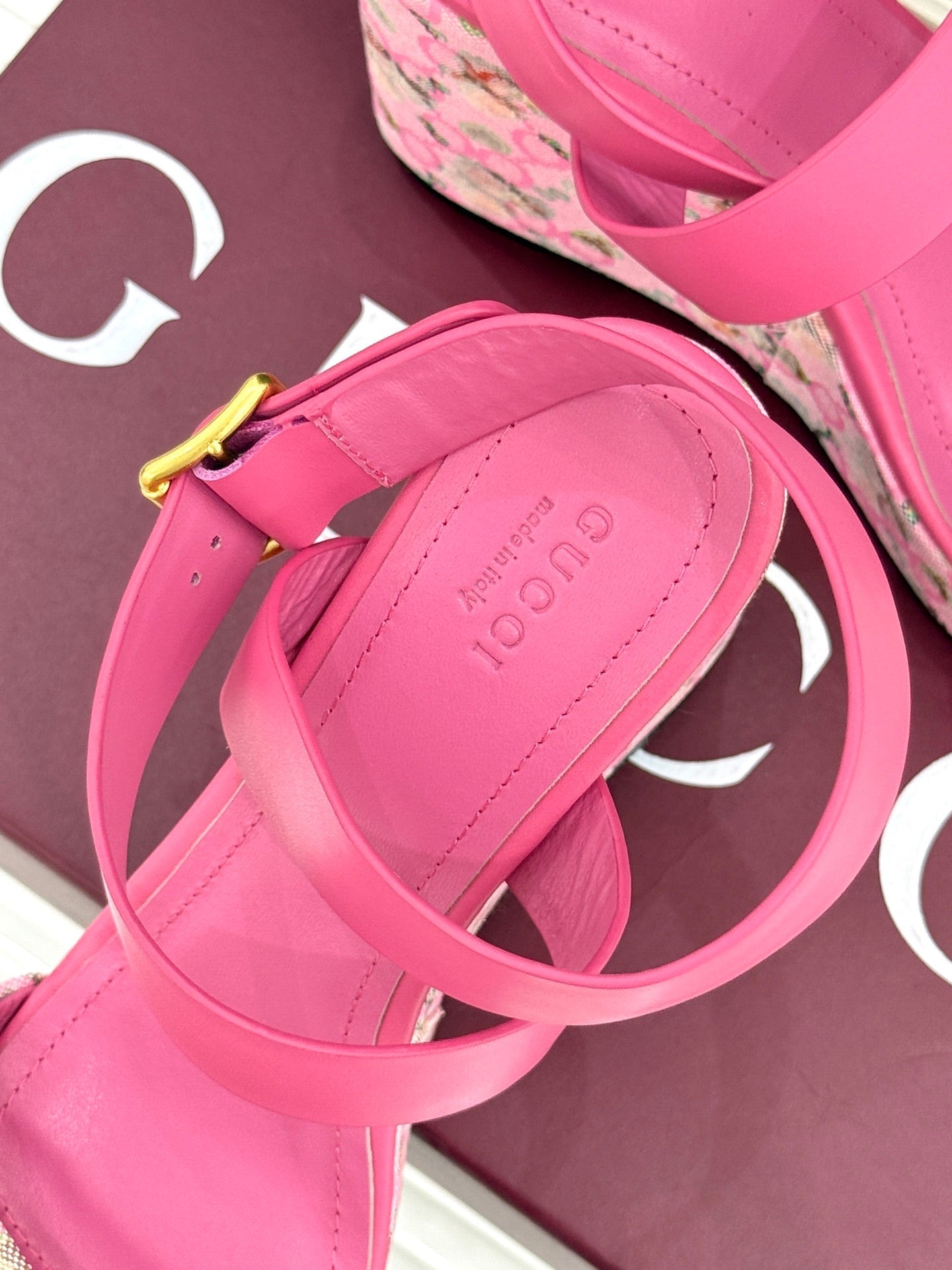GC Floral Platform Wedge Sandal Pink Mix Flower lambskin