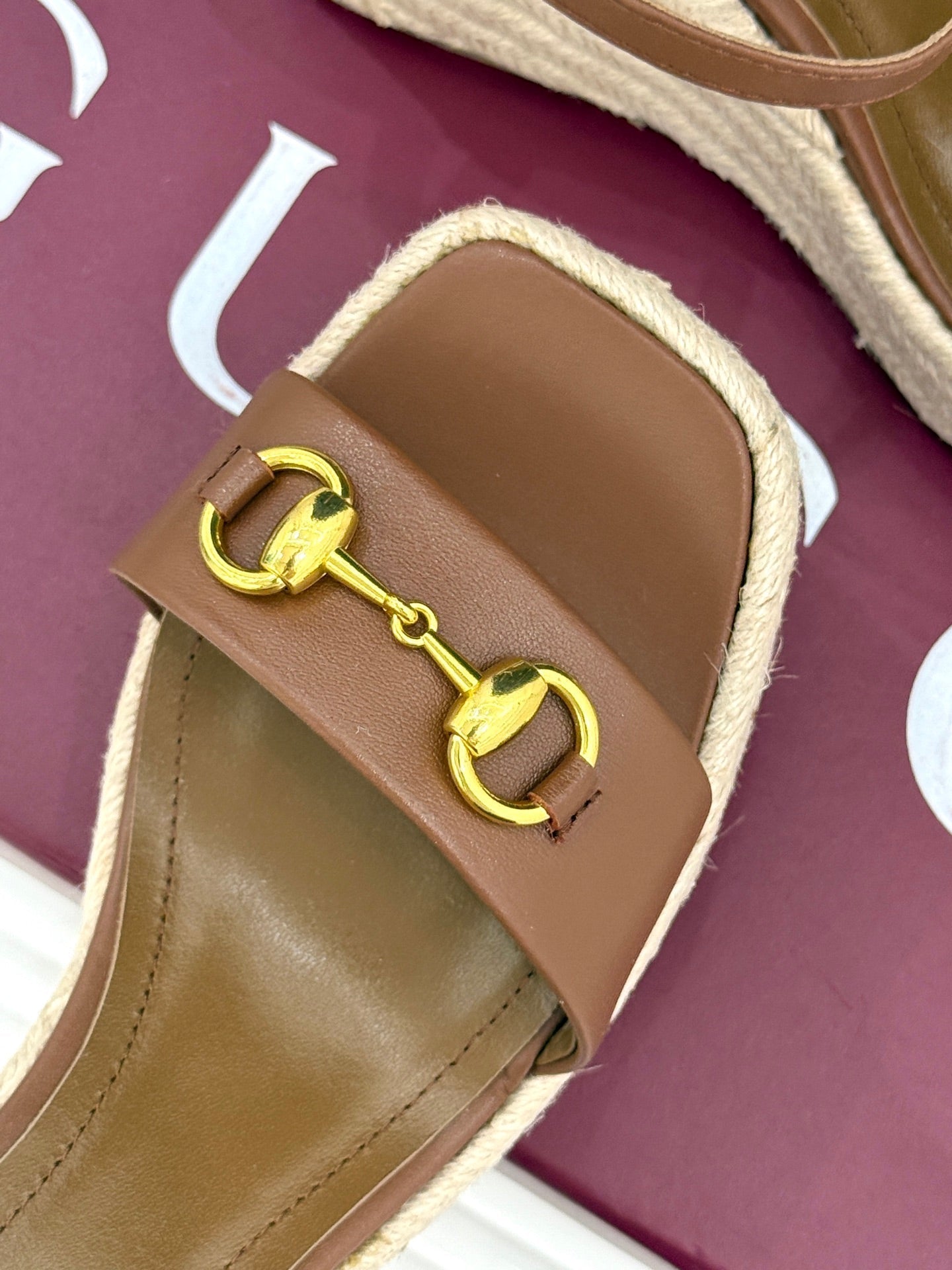 GC Floral Platform Wedge Sandal Brown Mix Beige lambskin