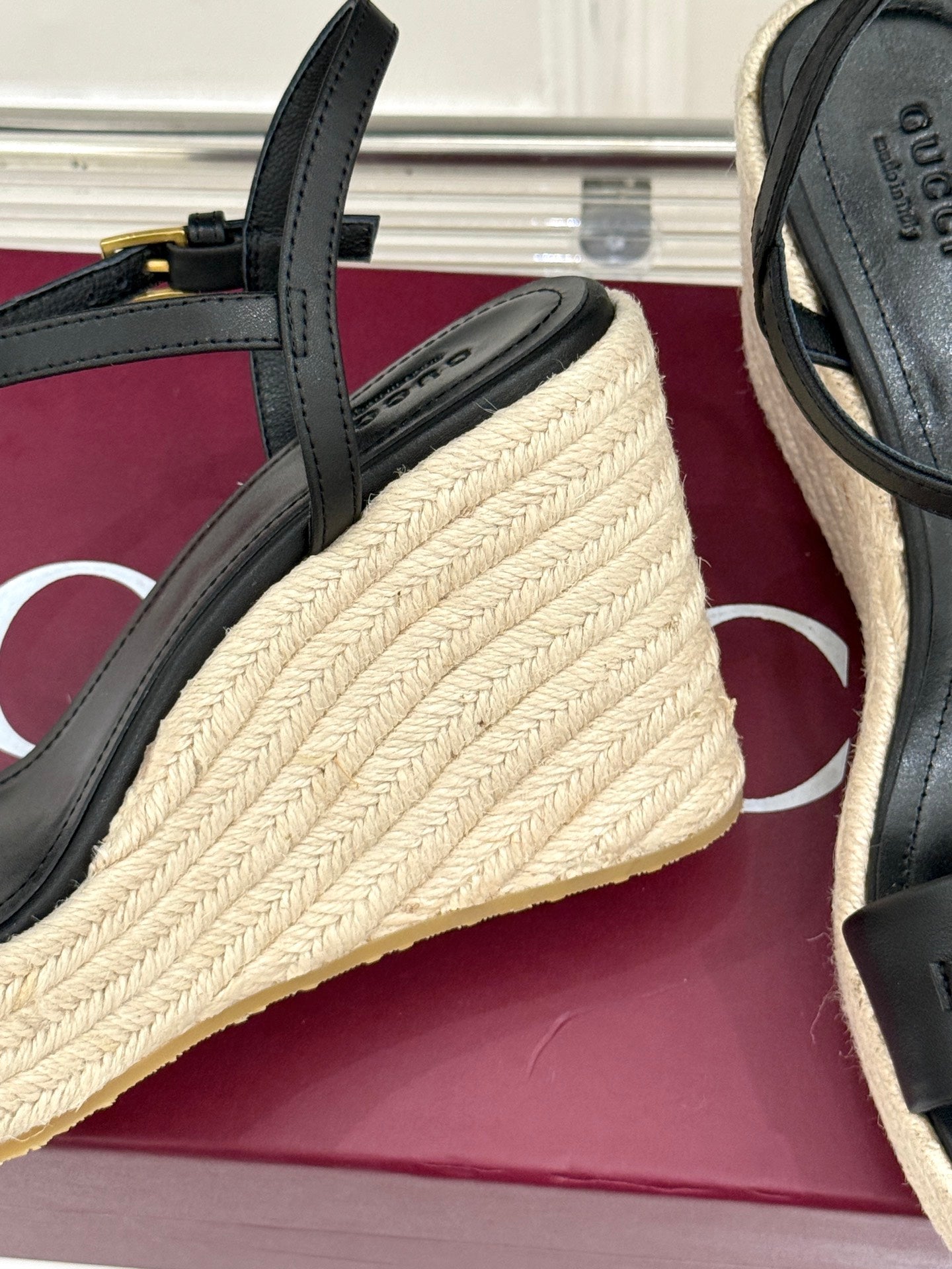 GC Floral Platform Wedge Sandal Black Mix Flower lambskin