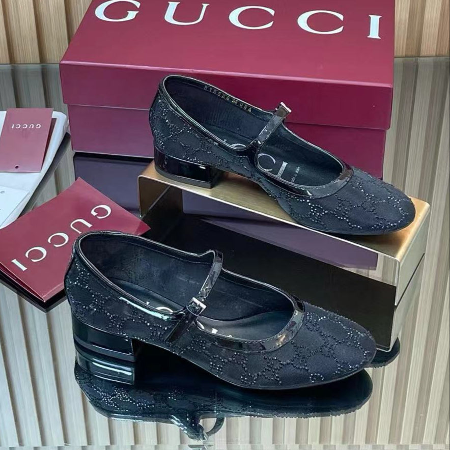 GC 25 Horsebit Ballet Flat Black Monogram Suede