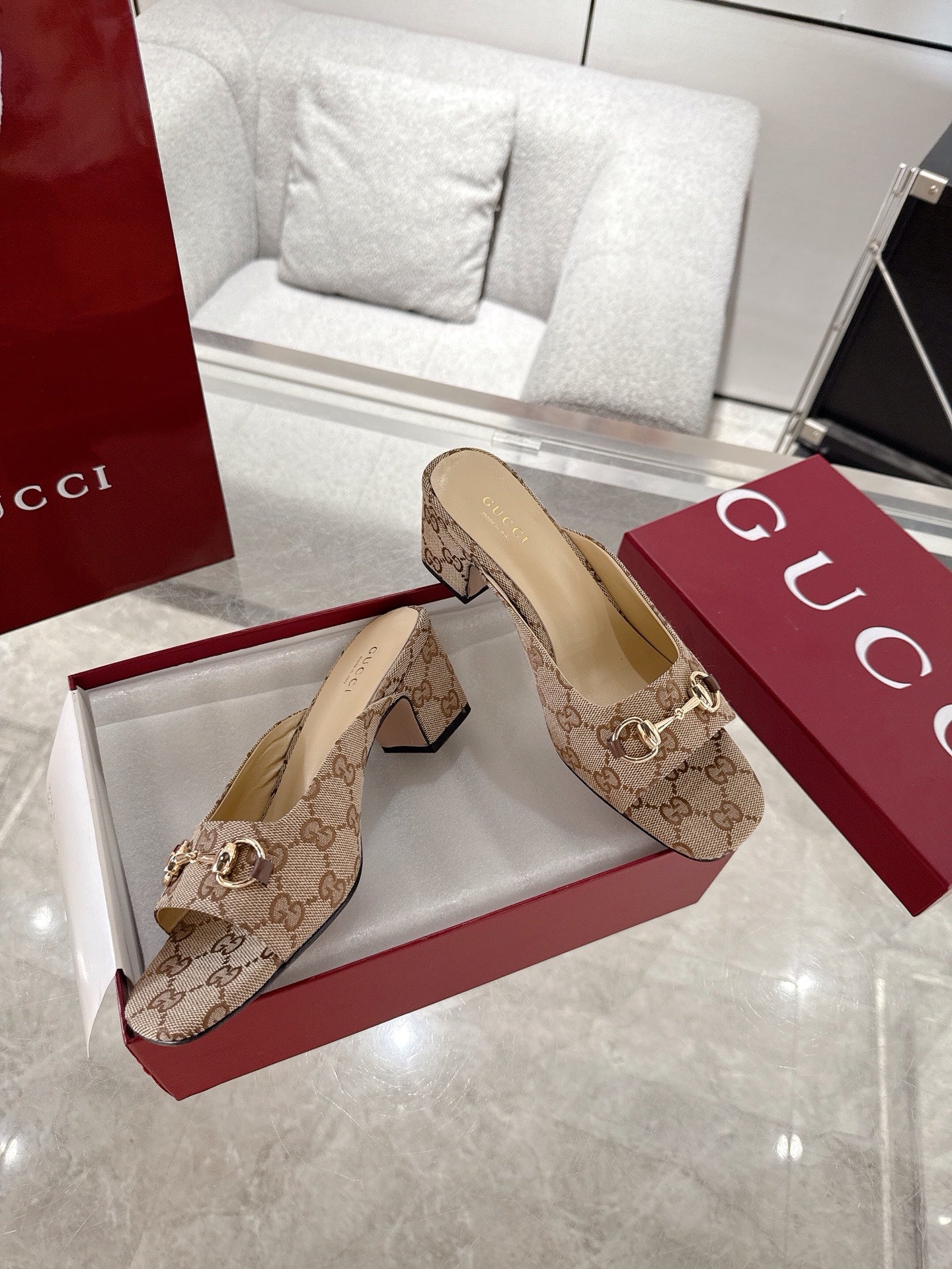 GC Horsebit Slide Brown Canvas Cowhide 292406