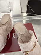 GC Wedge With Horsebit Sandal Beige Canvas 292423