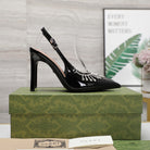 GG CRYSTAL HIGH HEEL SANDAL BLACK LAMBSKIN
