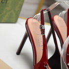 GG CRYSTAL HIGH HEEL SANDAL SCARLET LAMBSKIN