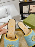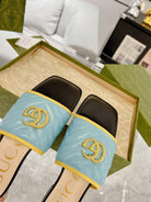 GG EXCLUSIVE SLIDE SANDAL SKY AND BLACK CALFSKIN