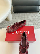 GG RIVETS BALLET FLAT GARNET HORIZONTAL STRAPS LAMBSKIN