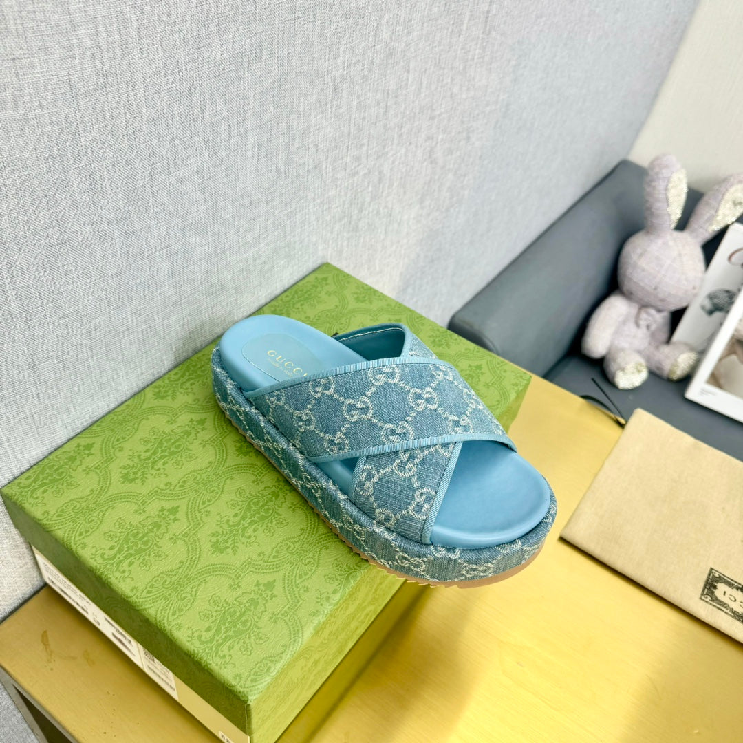 GG SLIDE SANDAL SKY CANVAS CROSS STRAPS