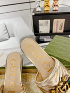 GG SPARKLE CRYSTAL SLIDE SANDAL METALLIC GOLD CALFSKIN