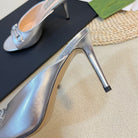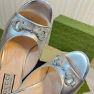 GG Women's Horsebit mid-heel slide sandal in Silver