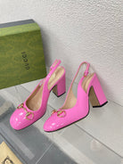 GG WOMEN'S HORSEBIT SLINGBACK 95MM IN FUSICA PINK CALFSKIN