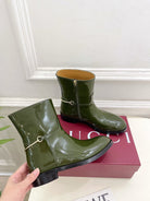 Gucci 25ð¬ð¬ horsebit ankle boots dark olive green patent calfskin