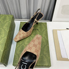 sling black pump 85 beige and ebony canvas