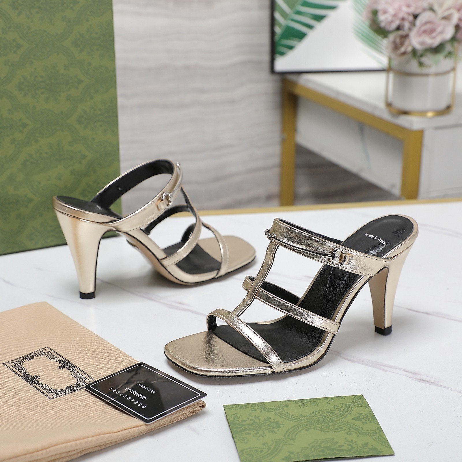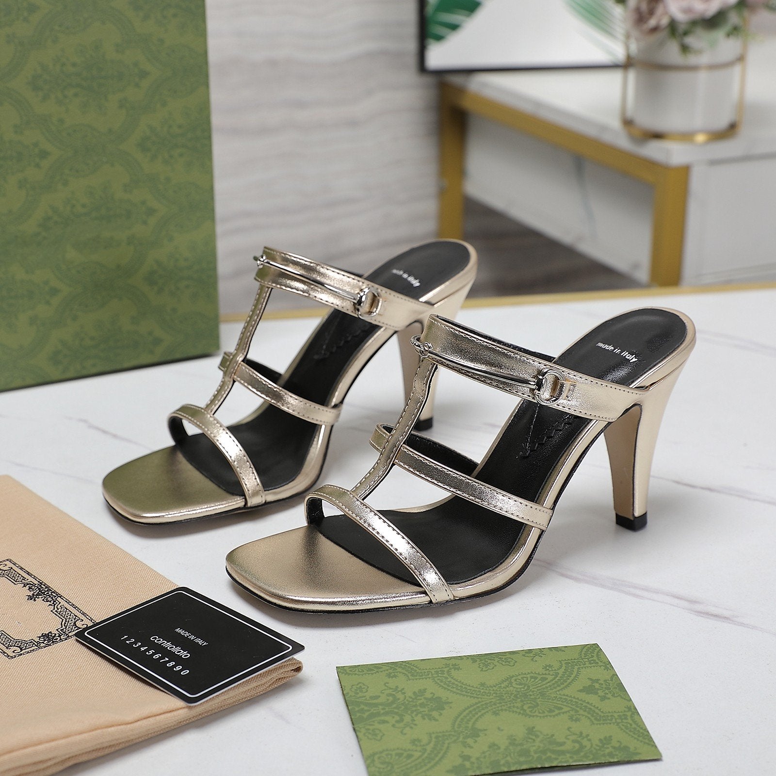 GG SANDALS HIGH-HEELED GREEN