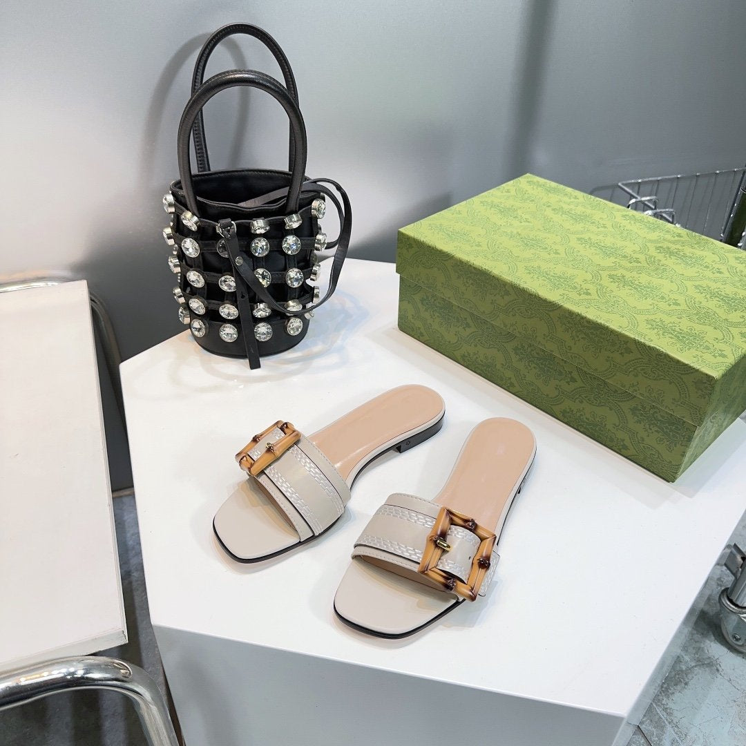 GG BAMBOO BUCKLE FLAT SANDALS BEIGE