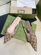 GC Horsebit Slingback Pump 10mm Beige mix Brown Canvas Sheepskin 294554