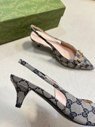 GC Horsebit Slingback Pump 50mm Beige mix Blue Canvas Sheepskin 294559