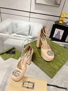 GG CRYSTALS PLATFORM PUMPS CREAM CALFSKIN