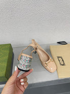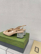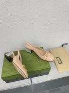 GG WOMEN'S HORSEBIT SLINGBACK IN TAN BEIGE CALFSKIN WITH RHINSTONES