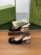 WOMEN'S HORSEBIT SLINGBACK 55MM IN BLACK CALFSKIN WITH RHINSTONES