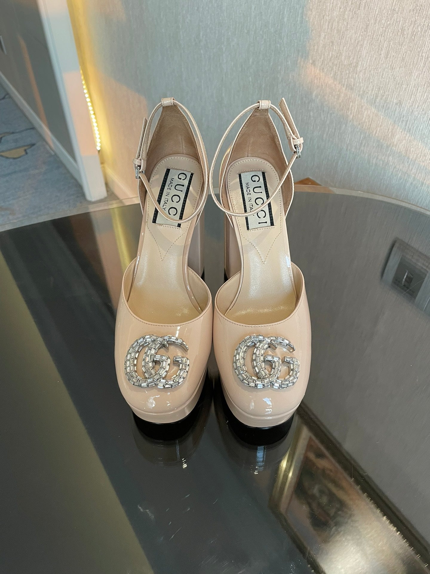 GG Pump 85 Beige Ebony Canvas Crystal-Embellished