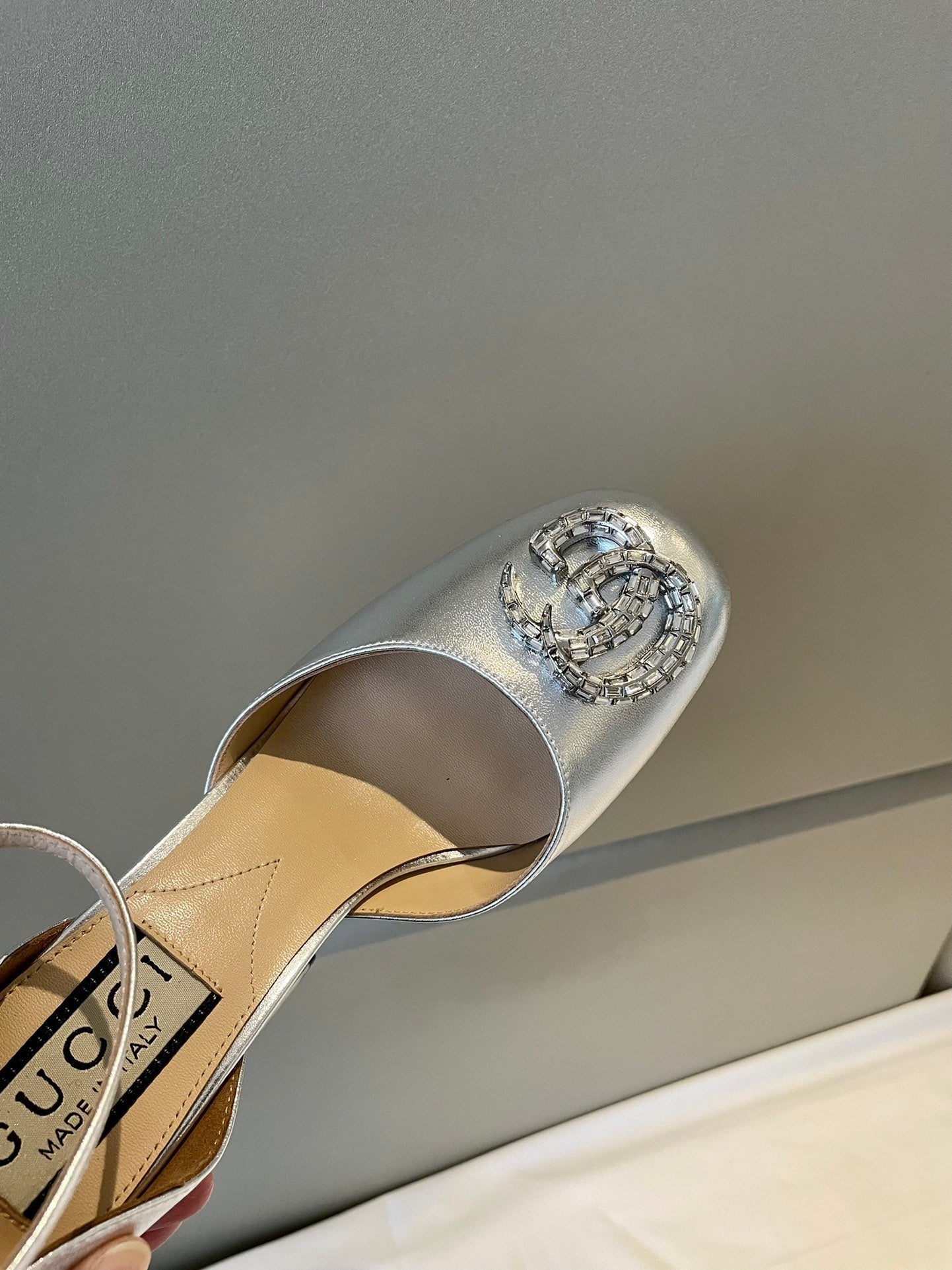 GC 25 Heeled 95mm Slingback Pump Silver Patent Leather 293864