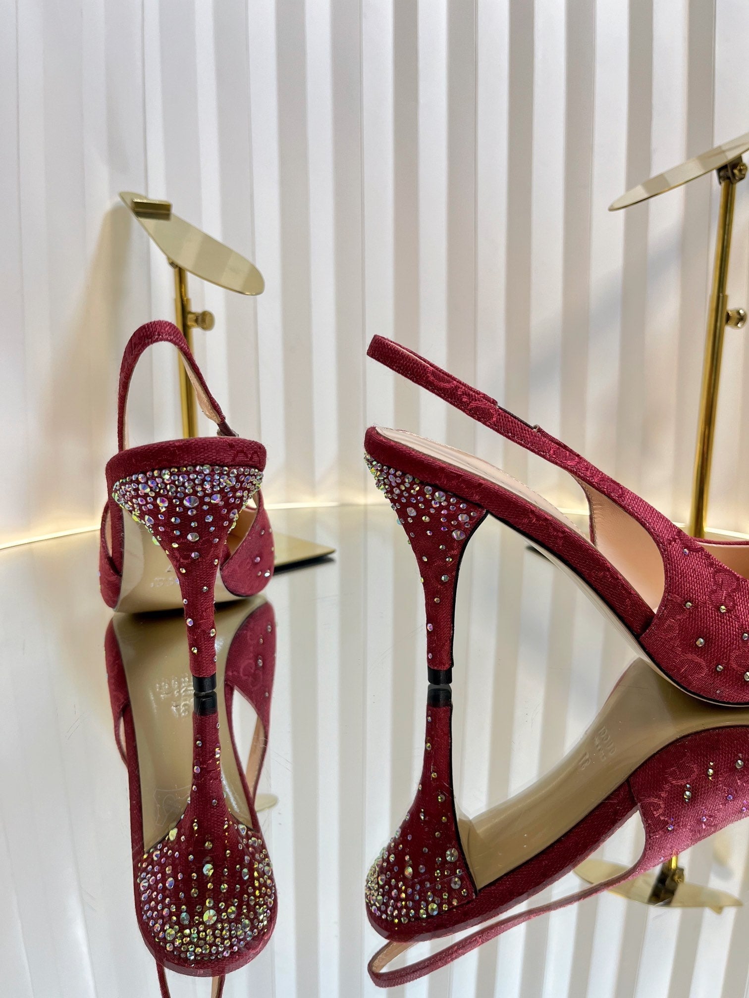 GG Horsebit Slingback 85MM Red Ebony Monogram Canvas Point Toe Crystal-Embellished
