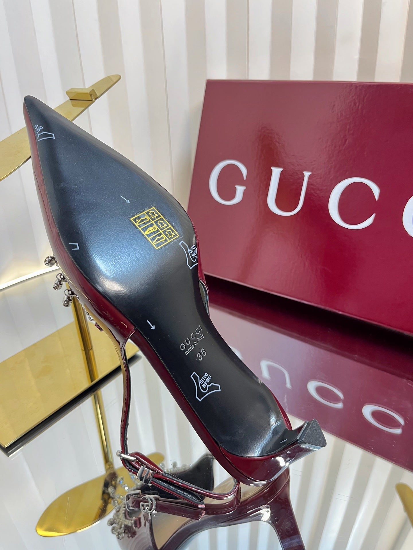 GG Pump 85 Red Ebony Canvas Crystal-Embellished