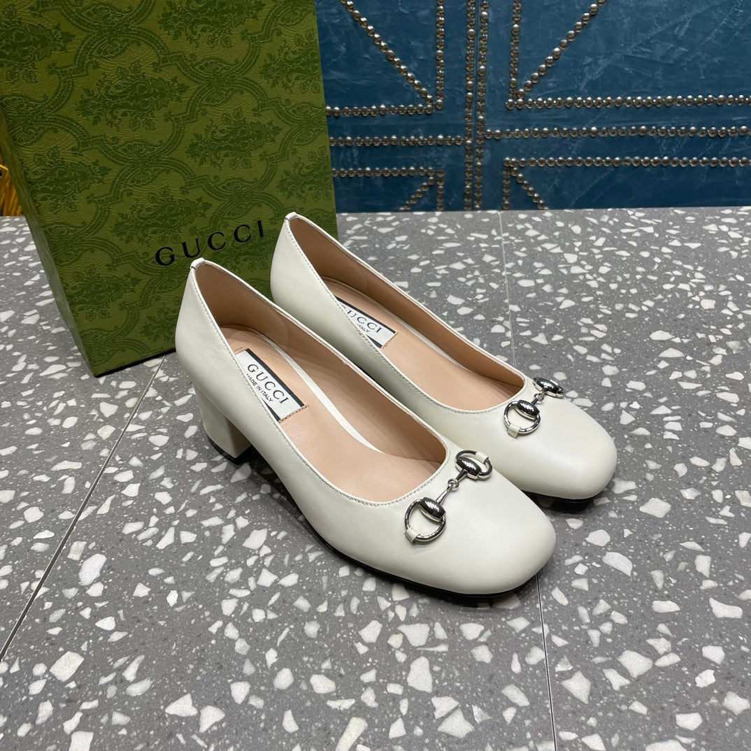 GG HIGH - HEEL SLINGBACK WITH HORSEBIT WHITE CALFSKIN