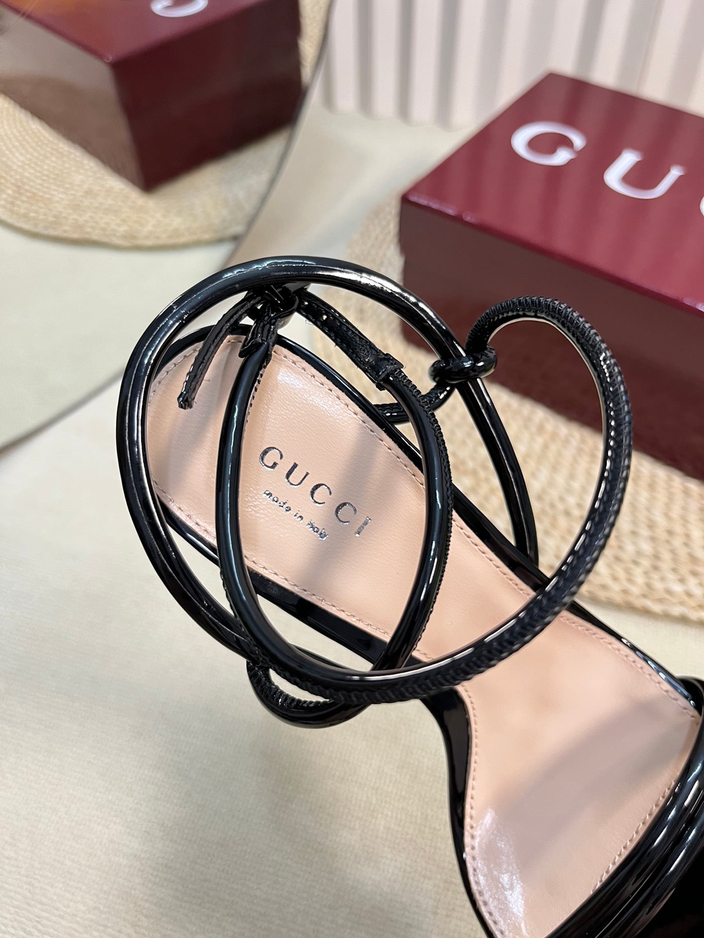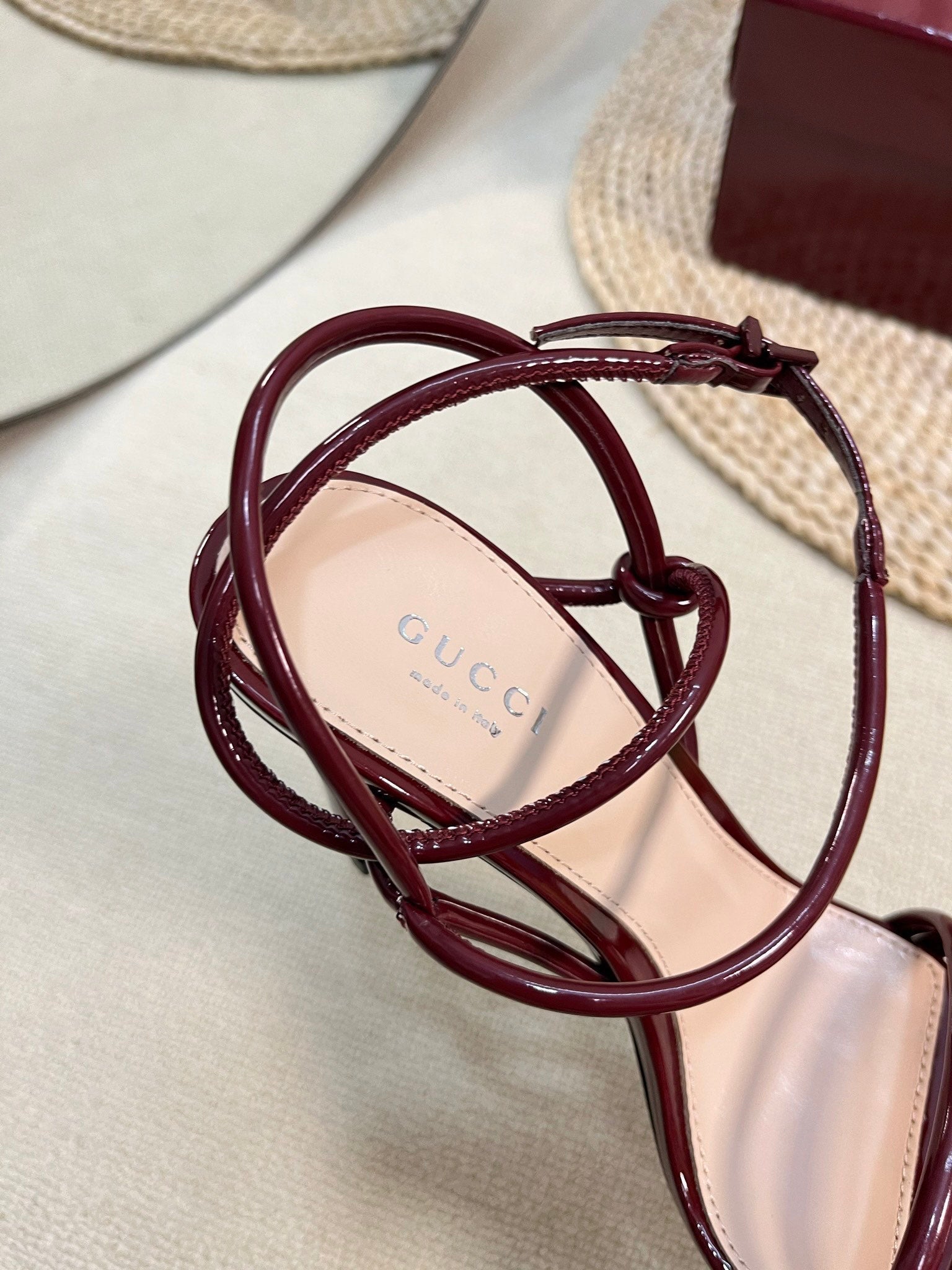 HIGH SANDAL 10 CM IN BERRY RED GLOSSY CALFSKIN