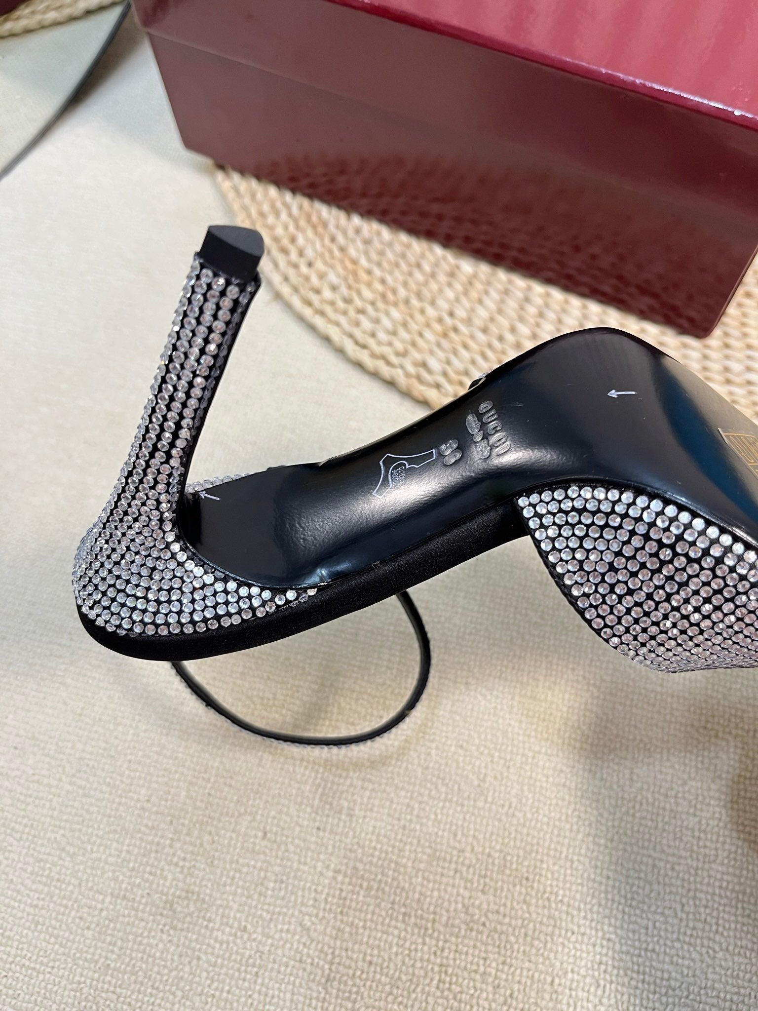 HIGH SLINGBACK 10 CM IN CHERRY RED SILK WITH FULL RHINSTONES