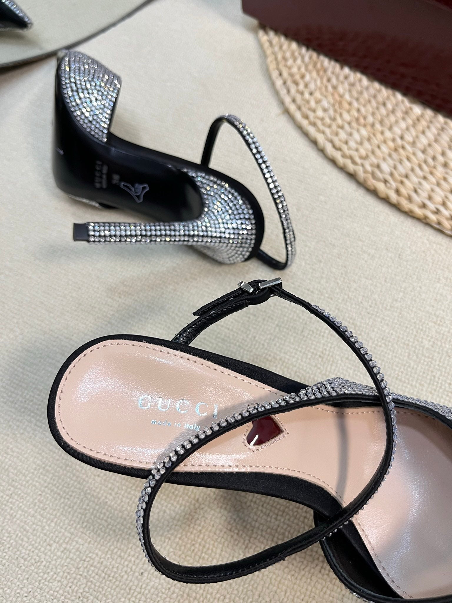 HIGH SLINGBACK 10 CM IN BLACK SILK WITH FULL RHINSTONES