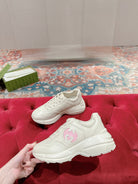 GG RHYTON TRAINER WHITE CALFSKIN WITH NAVY LOGO
