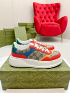GG TRAINER LIGHT BROWN AND CANDY CALFSKIN