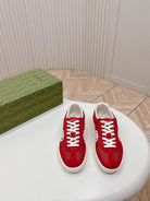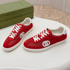SNEAKER WITH INTERLOCKING G IN CHERRY RED SUEDE AND MESH