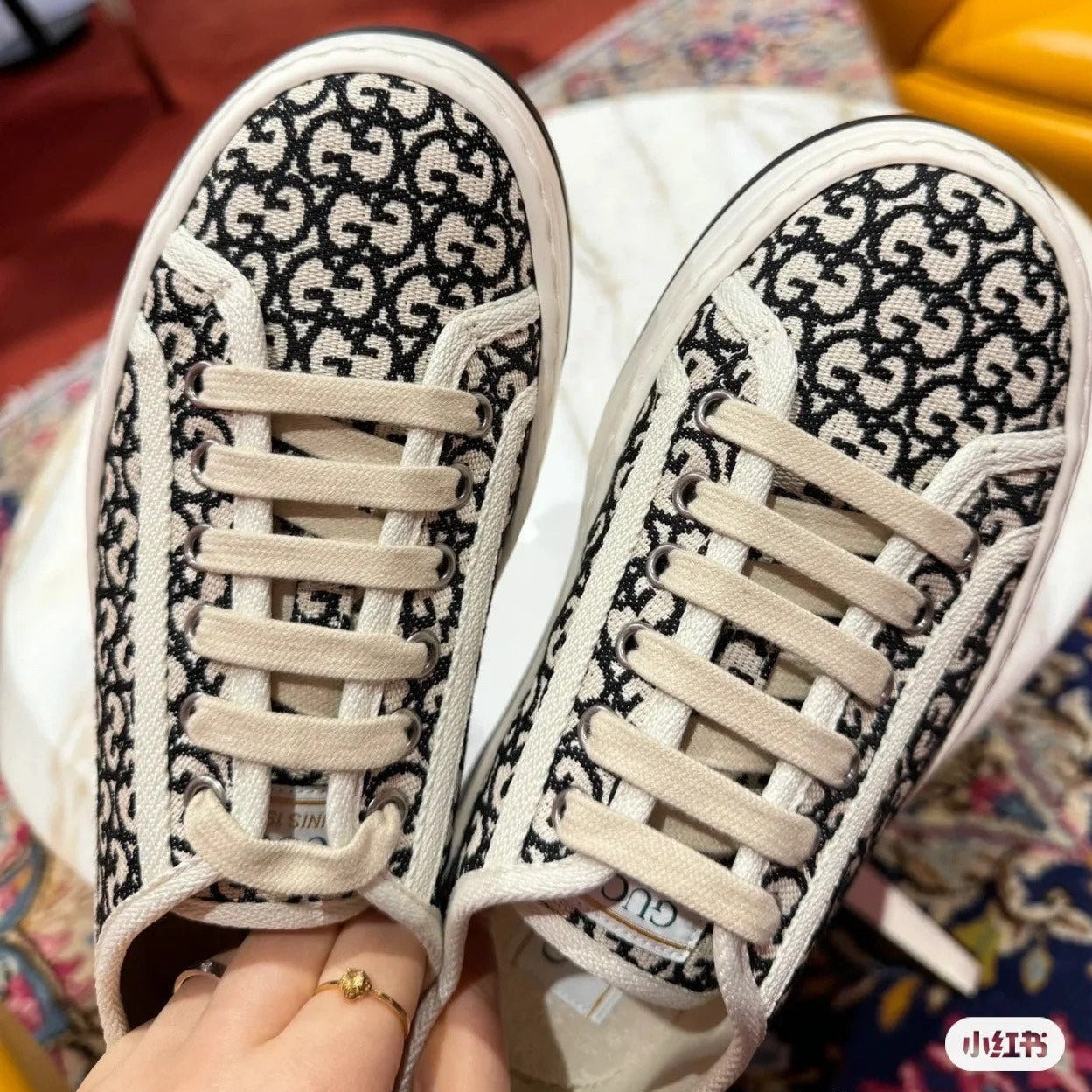 GG Low Sneaker Black White Canvas Suede Calfskin