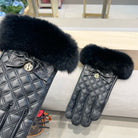 HM Glove Black Deer Skin With Rabbit Fur Lining 388638