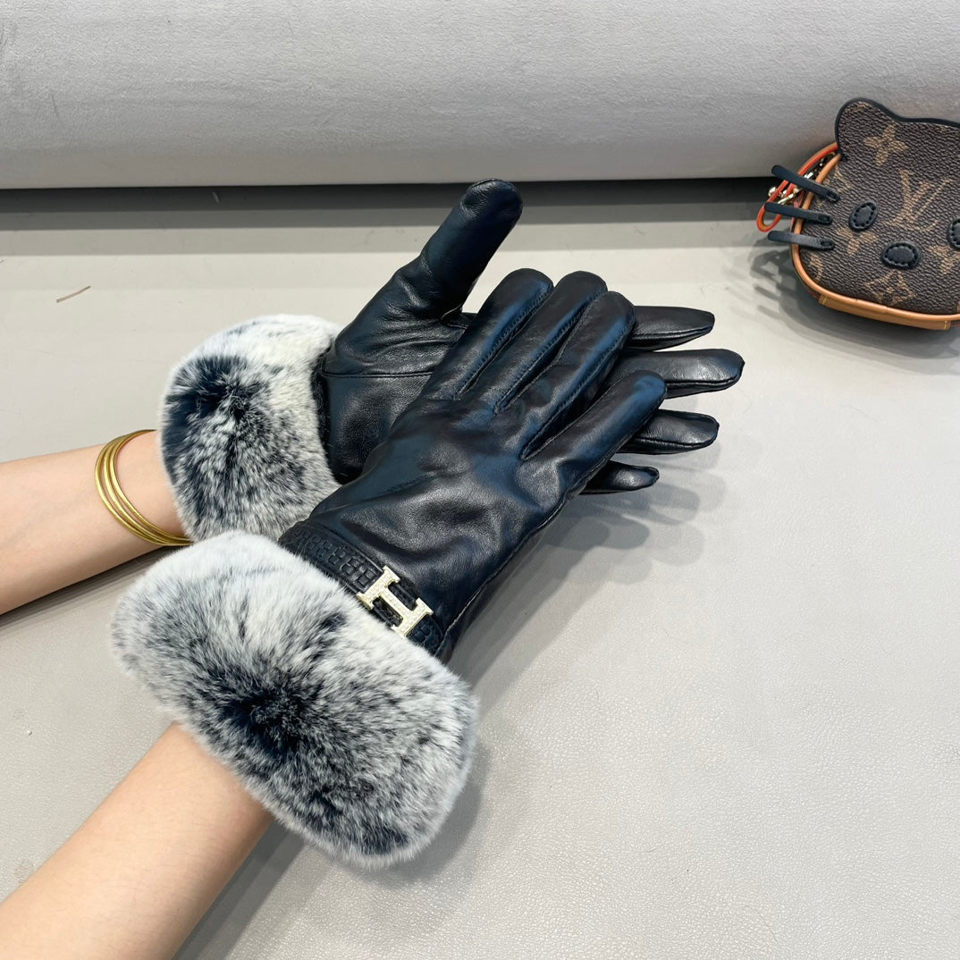 HM Glove In Black Lambskin With Rabbit Fur Lining 353541