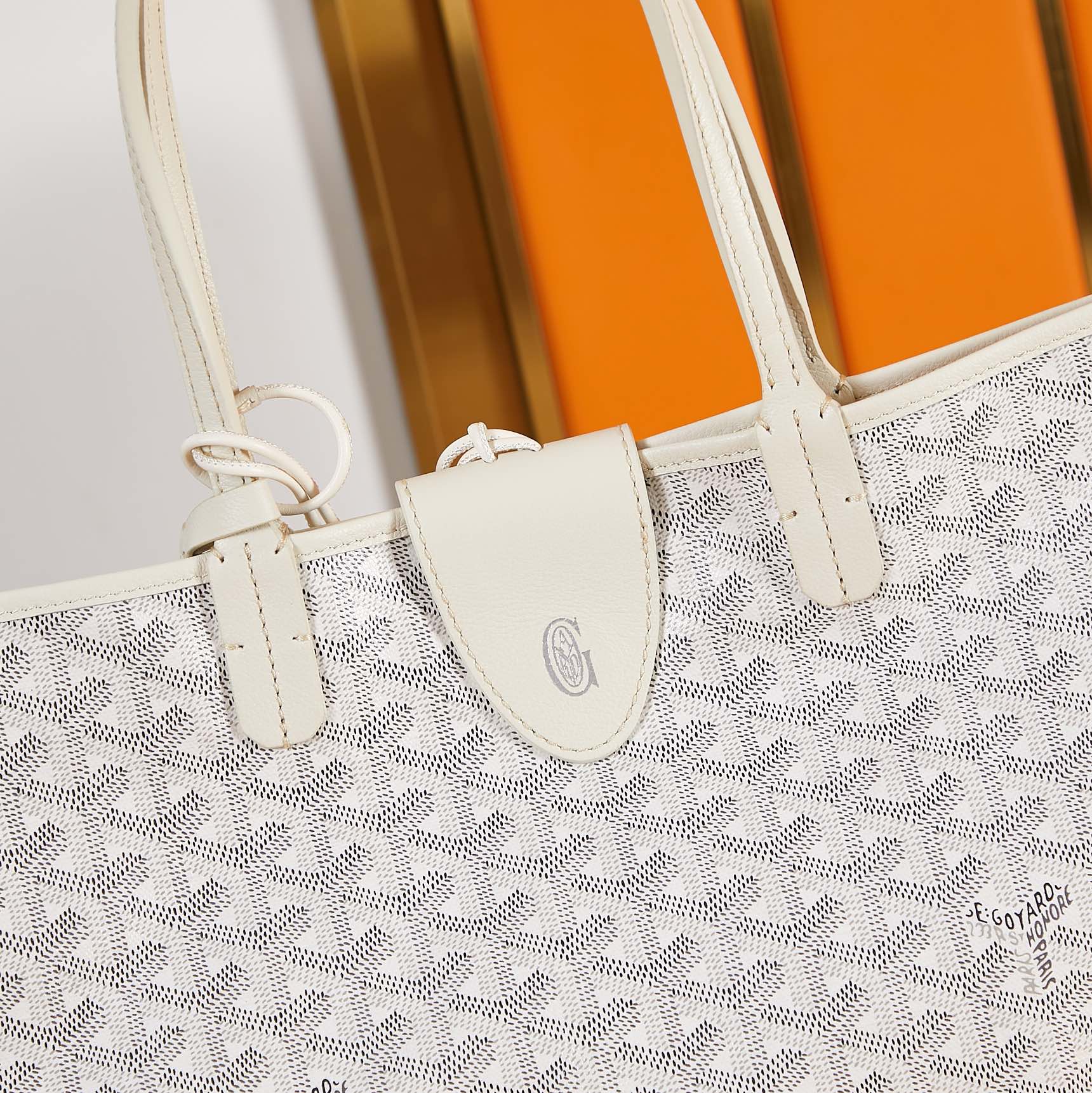 HARDY PM BAG 40 IN WHITE GOYARDINE CANVAS AND TAURILLON LEATHER TRIM